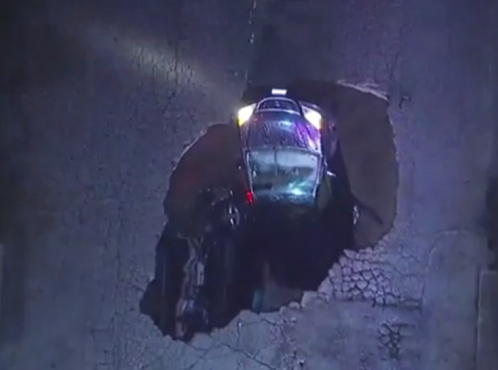 Cratera se abre de repente e engole carros em Los Angeles