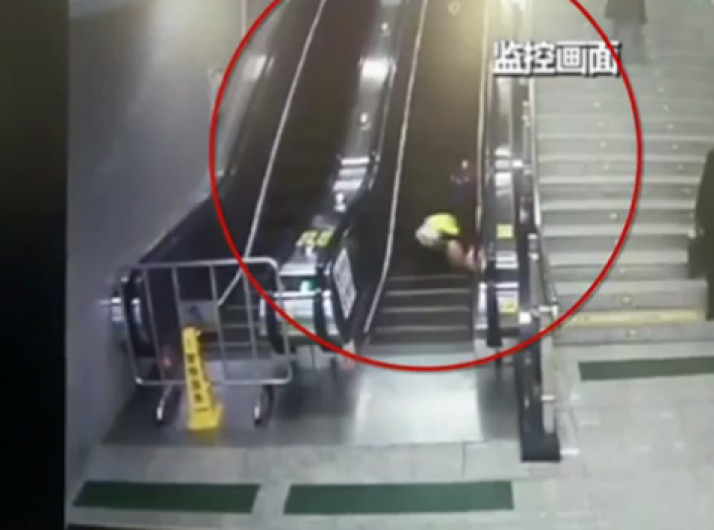 Mulher age rápido e salva idosa que caiu em escada rolante na China