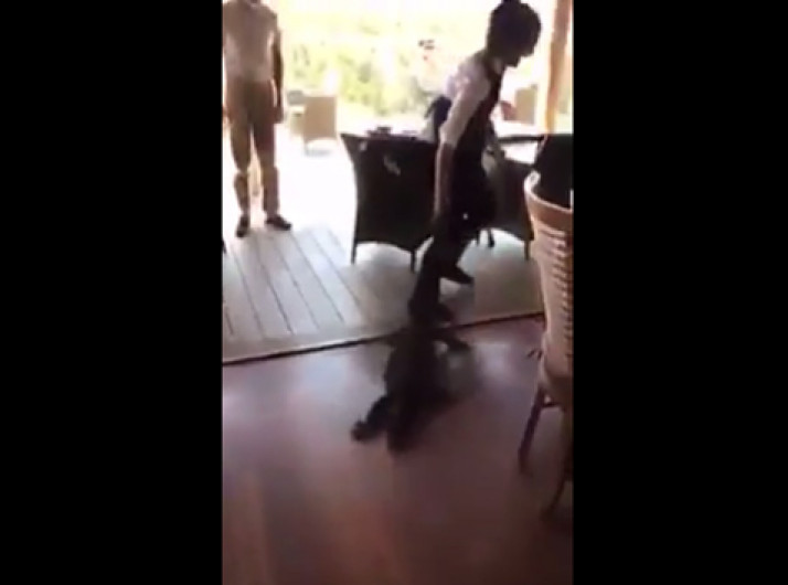 Garçonete impressiona ao expulsar lagarto gigante de restaurante