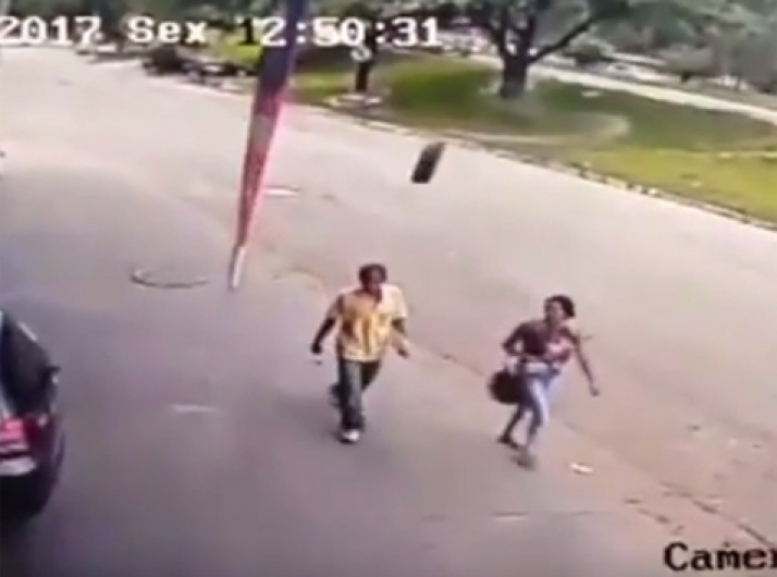 Homem é atingido fortemente por um pneu que se soltou de um carro