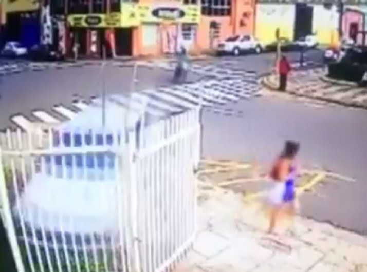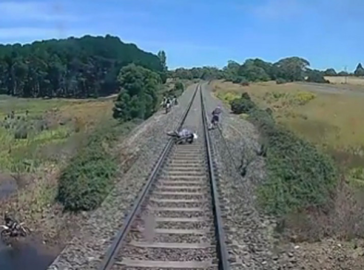Motociclista abandona a moto para se salvar de atropelamento de trem