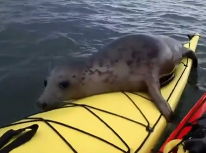 Foca pega carona em caiaque durante passeio na Escócia