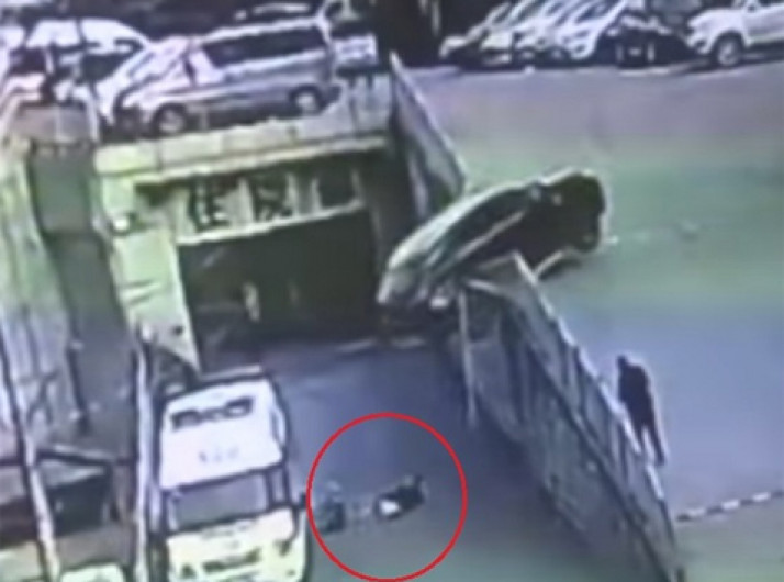 Mãe e filho quase são esmagados por carro na China