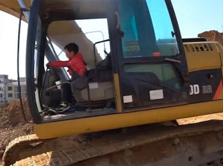 Garoto de 4 anos é filmado dirigindo retroescavadeira na China