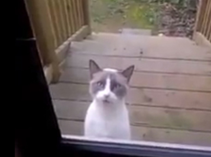Gato reclamando muito porque sua tutora não abre a porta para ele entrar