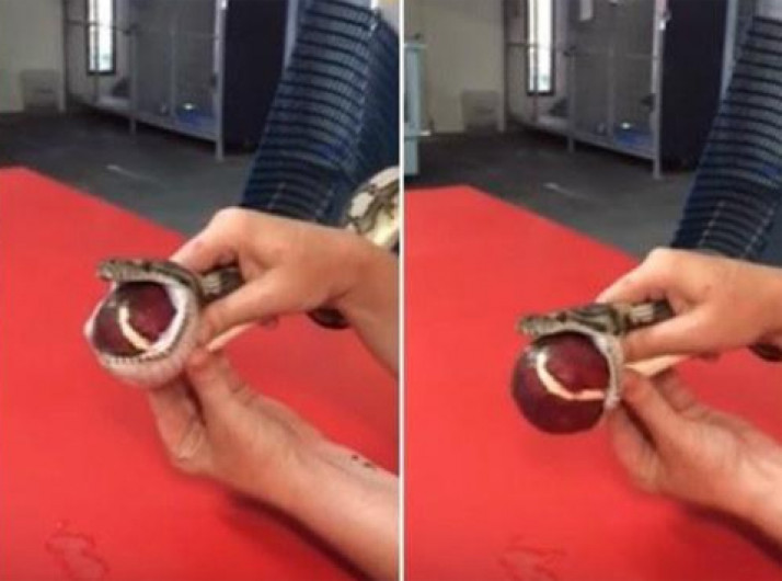 Cobra confunde bola de tênis com presa e fica entalada; veja