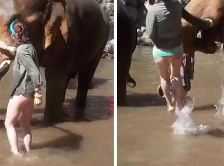 Mulher é arremessada para longe por elefante que ela tentava limpar