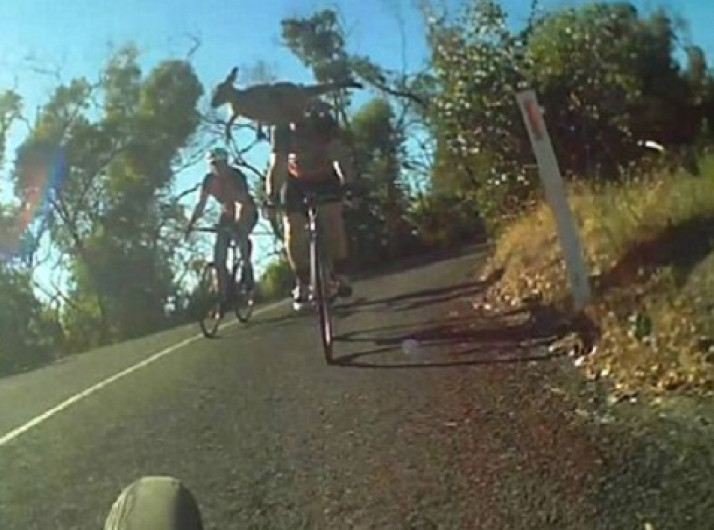 Canguru salta em estrada e atinge ciclista na Austrália