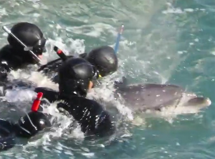 Mãe golfinho tenta impedir que filhote seja levado por caçadores