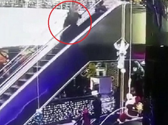 Bebê cai de escada rolante após mãe ficar com roupa presa em degrau