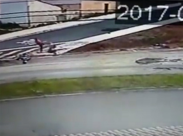 Homem atropela casal e depois volta para chutar a cabeça da mulher