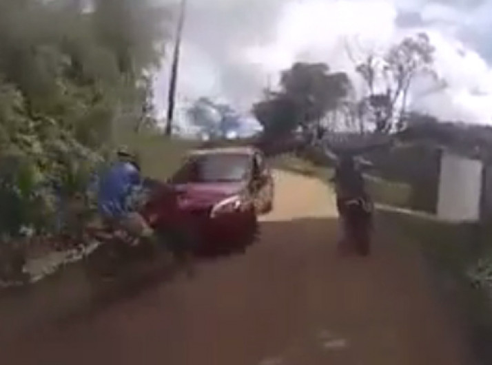 Trilheiros sofrem acidente de moto em estrada de terra; veja