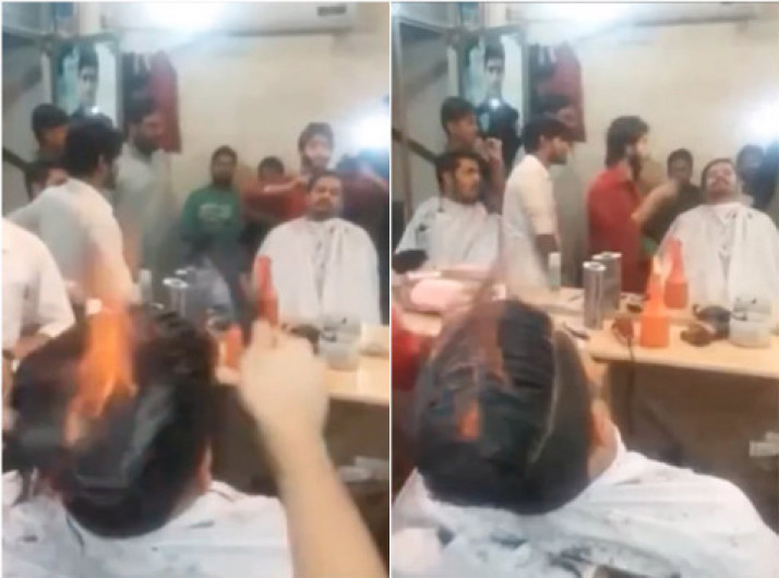 Cabeleireiro paquistanês usa fogo para cortar cabelo de cliente