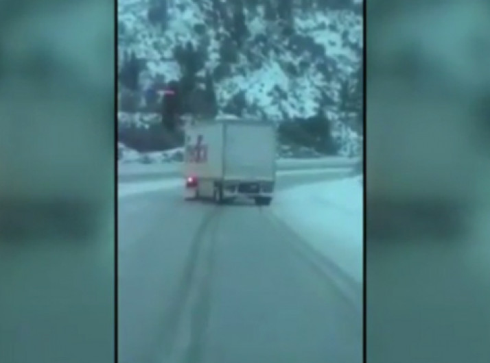Com problema nos freios, caminhão desliza em pista congelada nos EUA
