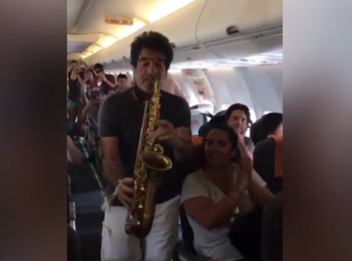 George Israel, ex-Kid Abelha, faz show para Sérgio Mallandro em avião