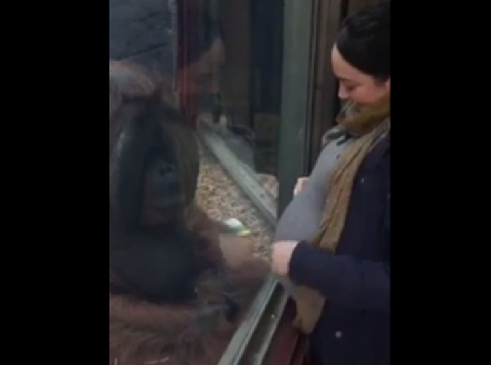 Orangotango causa emoção ao beijar barriga de grávida em zoológico