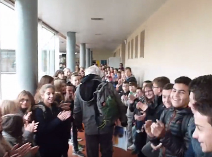 Professor é aplaudido por 700 alunos da escola onde ensinou por 38 anos