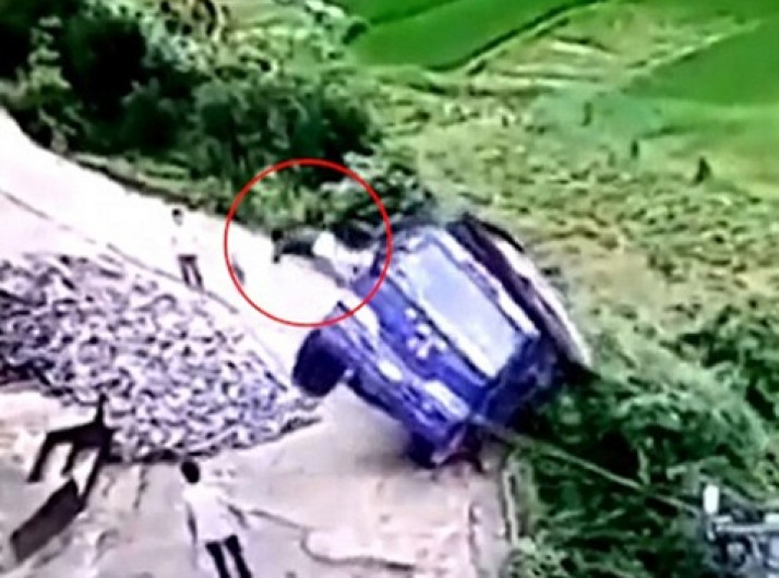 Motorista esquece de puxar o freio de mão e destrói carro de luxo na China