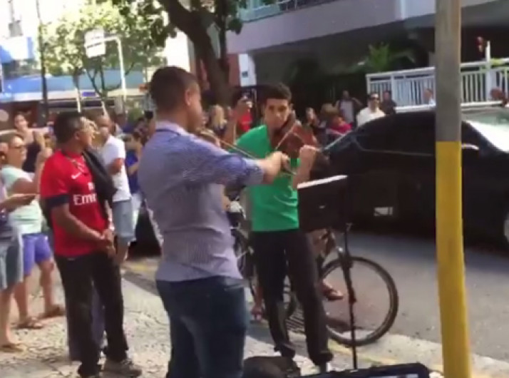 Violinistas tocam a música do Titanic para mulher de Cabral