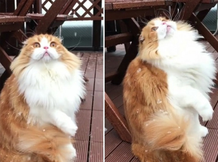Gato vê a neve pela primeira vez e reação encanta internautas