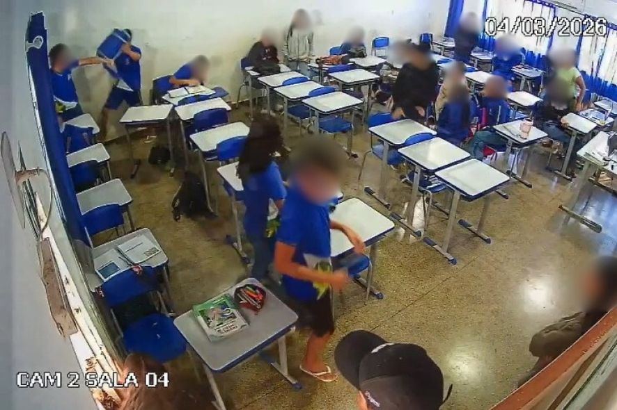 A violência foi registrada por uma câmera de segurança instalada dentro da sala de aula, por volta das 8h50. Nas imagens, é possível ver que a vítima está sentada no canto da sala quando o agressor chega, o encarando.