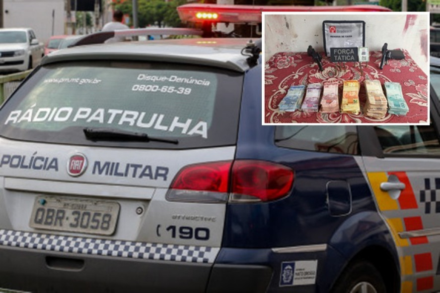 Com os assaltantes, a PM encontrou um malote com R$ 31.839, que havia sido levado do banco.