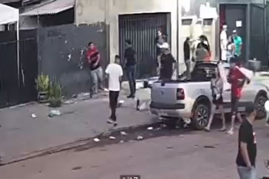 O caso foi registrado por volta das 5h da manhã. Nas imagens captadas por uma câmera de segurança instalada em frente ao local do crime, é possível ver o jovem acompanhado por um grupo de seis pessoas.