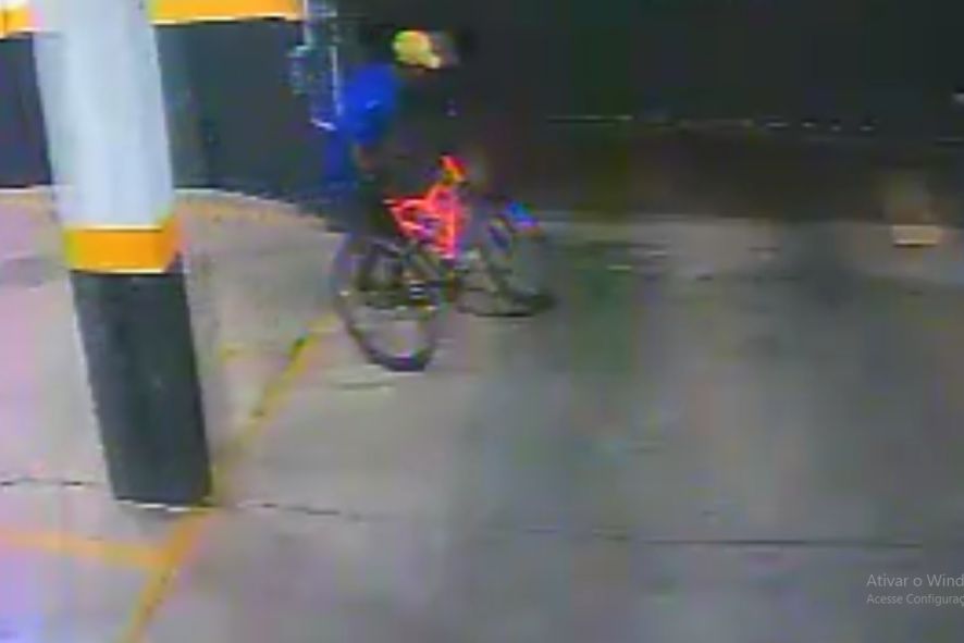 Já o outro crime ocorreu na noite de 21 de novembro. Na imagem o assaltante aparece entrando pela garagem e saindo com a bicicleta de um dos moradores.