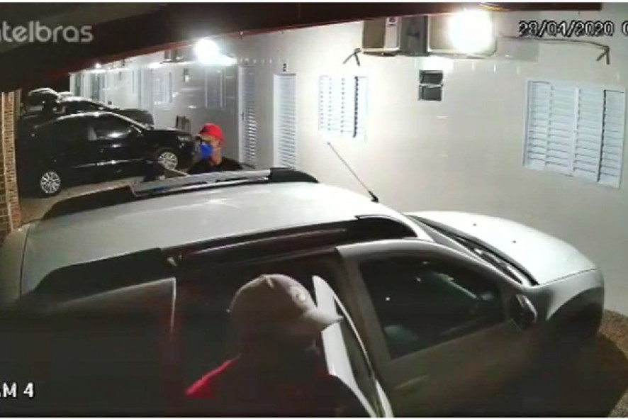 Pelo vídeo é possível ver quando dois homens e uma mulher chegam no estacionamento, na frente do quarto onde ocorreu o crime, por volta de 1h20.