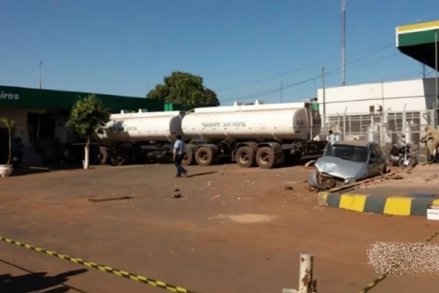 Testemunhas informaram que, após o motorista ser baleado, o veículo invadiu um posto de combustíveis, destruindo parte da estrutura do local.