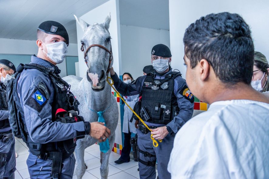 Uma visita especial proporcionada pela Cavalaria da Polícia Militar de Mato Grosso mudou a rotina do Hospital de Câncer (Hcan), na manhã desta quarta-feira (26.04), em Cuiabá.