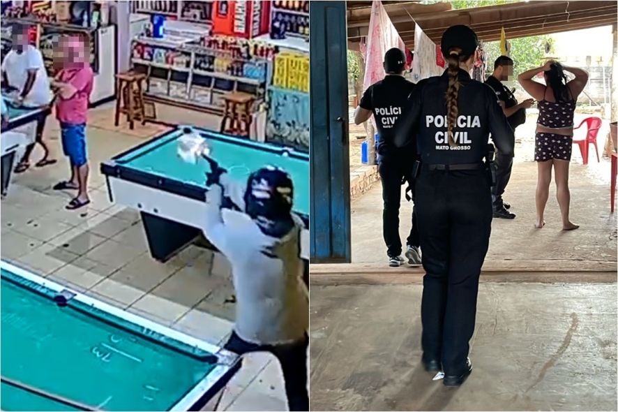 As imagens mostram que um grupo de amigos estava em volta da mesa de sinuca quando um homem, com capacete na cabeça, entrou atirando contra a vítima. Foram quatro disparos efetuados contra Rodrigo.
