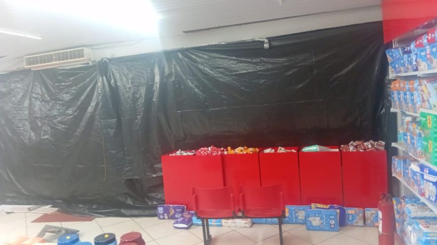 Conforme o boletim de ocorrência, a PM foi acionada após uma empresa de monitoramento informar que o alarme da Drogaria + Popular Três Américas disparou, com suspeita de arrombamento do caixa eletrônico.