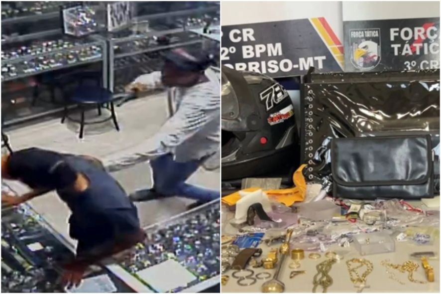 Dois homens foram presos após assaltarem uma relojoaria e manterem funcionários em cárcere privado na cidade de Sorriso (a 402 km de Cuiabá), na segunda-feira (27).