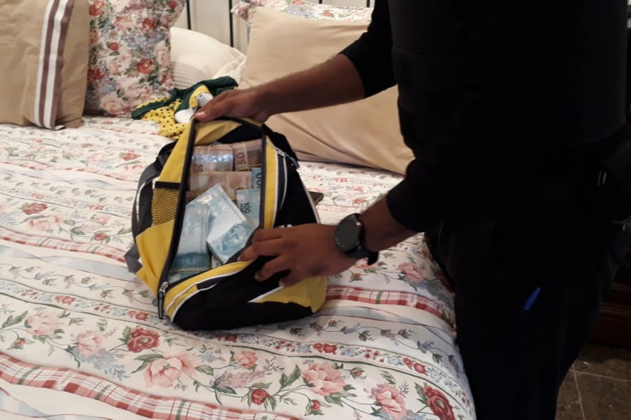 Durante busca e apreensão, a equipe da GCCO encontrou o montante dentro de uma mochila em cima de um móvel do quarto do bicheiro (veja vídeo abaixo).