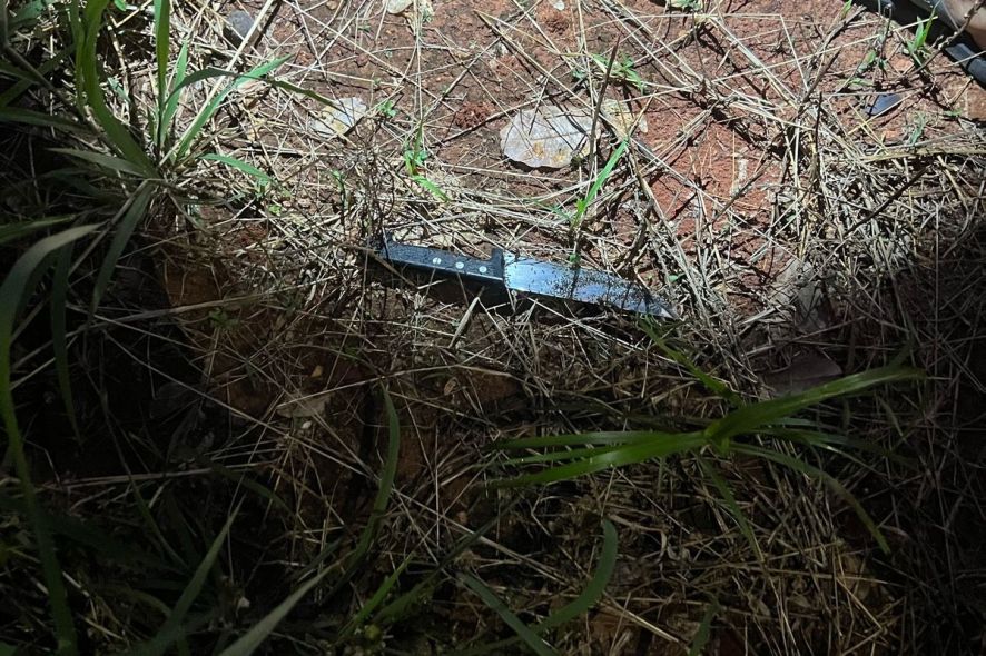 O suspeito levou os militares até o local onde havia jogado a faca usada no crime. A arma foi encontrada e apreendida.