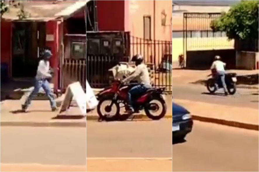 Após toda a confusão e os disparos frustrados o homem foi em direção à motocicleta em que havia chegado, uma Honda Broz de cor vermelha, para fugir.