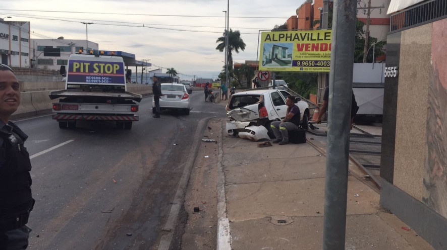 Uma pessoa ficou ferida em um acidente na manhã deste sábado (25), na Avenida Miguel Sutil, em Cuiabá.