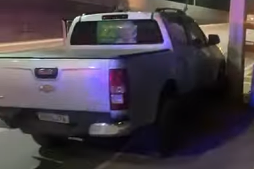 O suspeito, entretanto, não puxou o freio de mão ao descer do veículo. A camionete, então, se deslocou e colidiu com um poste, danificando o pneu direito e o para-choque dianteiro.