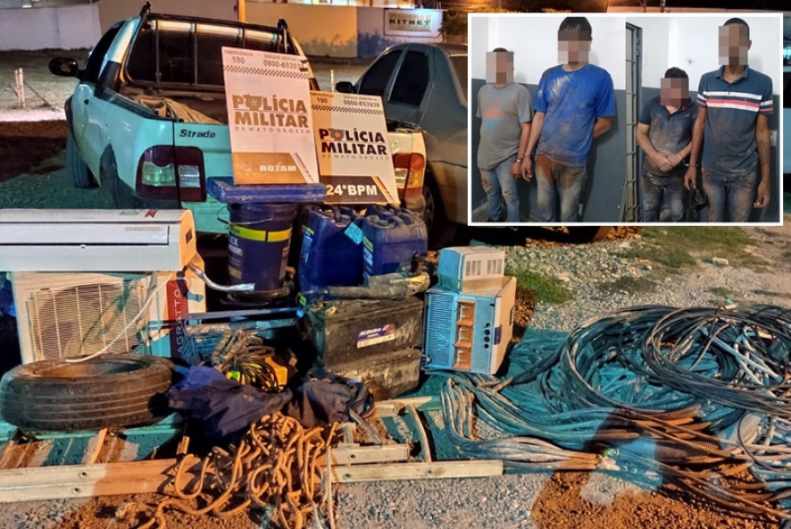 Policiais da Rotam (Rondas Ostensivas Tático Móvel) prenderam quatro ladrões que haviam acabado de roubar uma pedreira na madrugada desta terça-feira (9), no Bairro Pedra 90, em Cuiabá.