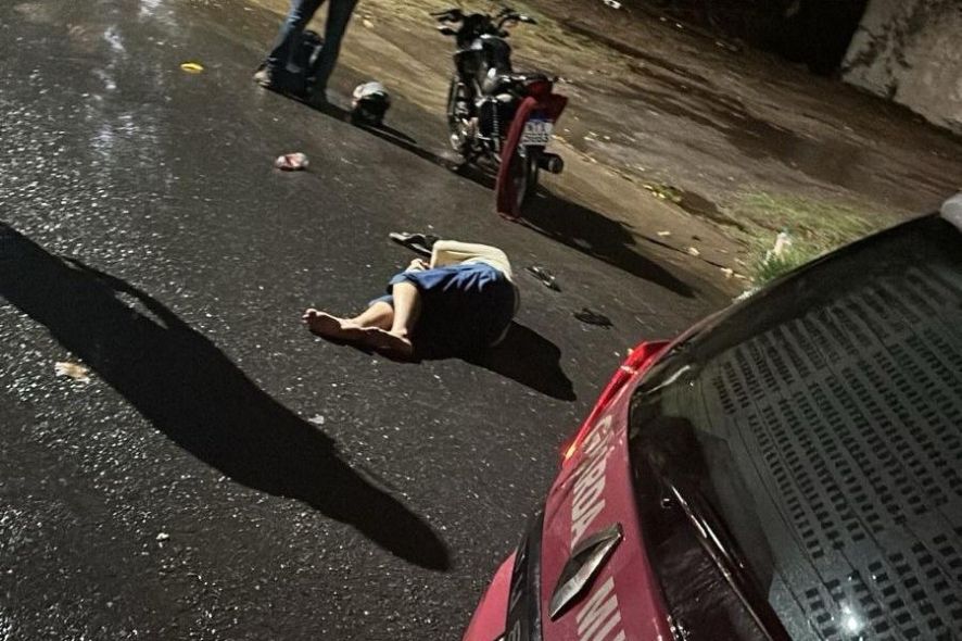 Uma mulher de 45 anos ficou ferida após ser atropelada por um motociclista embriagado na noite deste sábado (18), no Bairro Manga, em Várzea Grande.