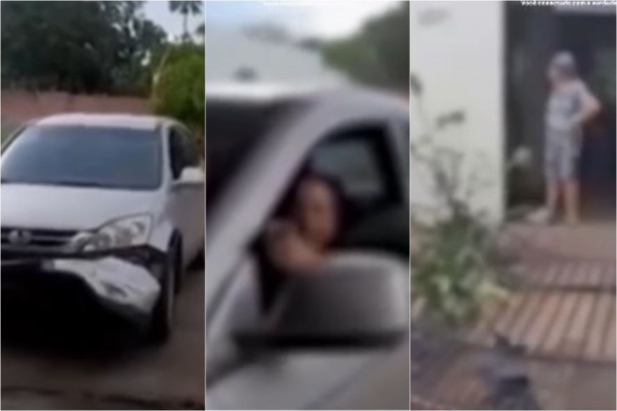 Vídeos que circulam nas redes sociais mostram a suspeita invadindo a loja 8 Segundos Agropecuária várias vezes com o veículo, por volta das 15h40. Ela atingiu sacos de carvão e tambores de ração que estavam expostos para venda. Com o impacto, o para-choque dianteiro e a placa do carro ficaram no local.