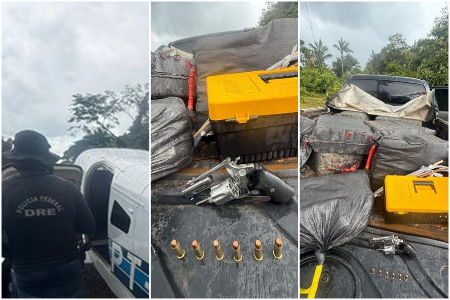 Durante a ação policiais federais avistaram e abordaram a aeronave. No interior do avião, foram encontrados 12 fardos contendo tabletes de cocaína e uma arma de fogo.