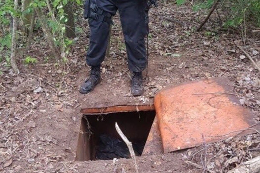 Em um sítio localizado na zona rural de Cáceres, os policiais encontraram um esconderijo subterrâneo, que era utilizado como depósito secreto de drogas, armas e dinheiro.