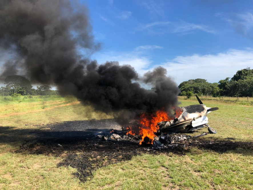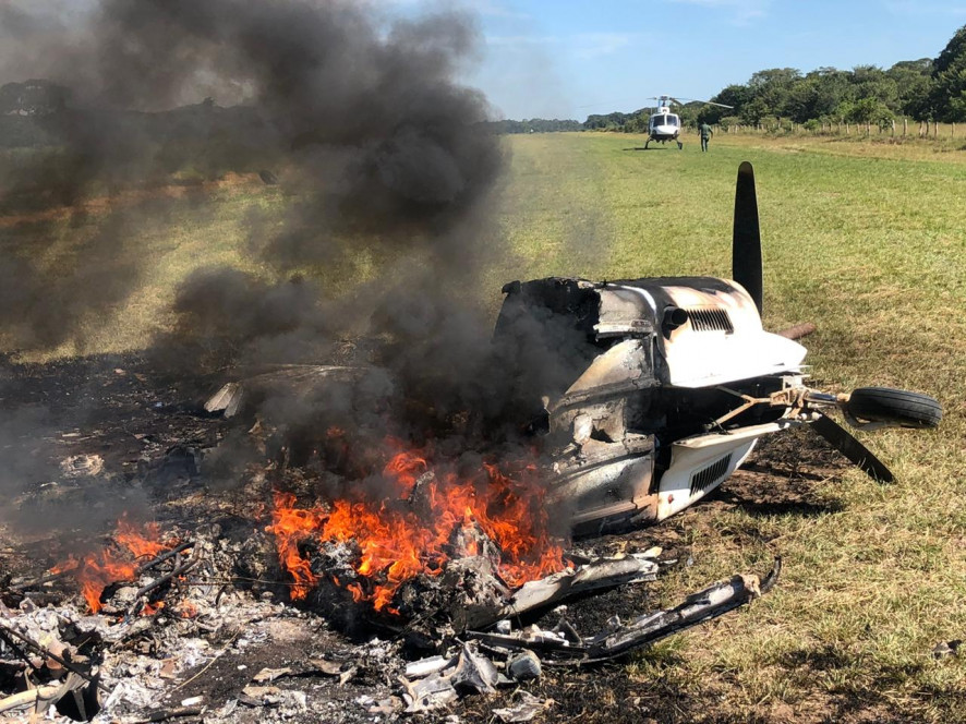 O avião ficou destruído, mas a equipe policial ainda conseguiu identificar vestígios de produto análogo a cocaína, que foi recolhido e encaminhado para análise da perícia.