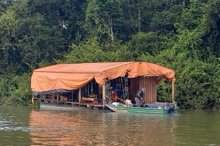 Em continuidade a uma ação que desarticulou uma quadrilha e o fechamento de um garimpo ilegal na terça-feira (11), as equipes militares receberam uma denúncia de que integrantes de uma facção criminosa estavam no local tentado recuperar um balsa que teria sido inutilizada pela Polícia Militar Ambiental.