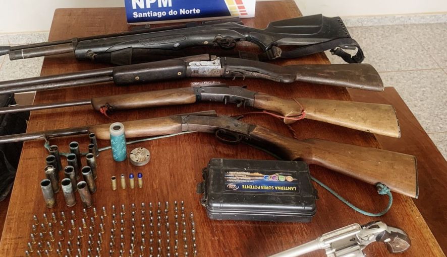 Com o suspeito, foram encontradas três espingardas, um revólver e uma carabina e 189 munições.