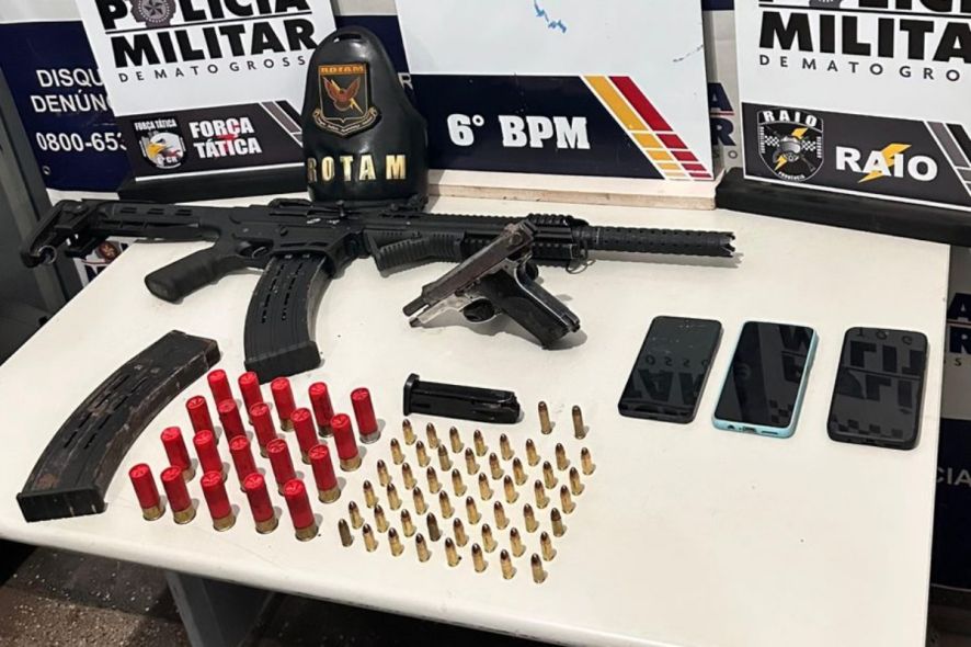 Em seguida, os militares da Rotam localizaram um terceiro envolvido. Os suspeitos foram identificados como integrantes de uma facção criminosa e confessaram que estavam na cidade para cometer homicídios contra integrantes de uma facção rival. Os suspeitos foram detidos e encaminhados para a delegacia, junto com o material apreendido.