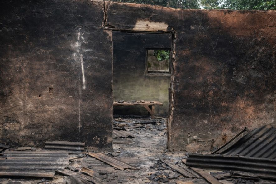 Conforme a Polícia Militar, os agentes encontraram duas residências no mesmo quintal, nas proximidades da BR-174. Uma delas estava completamente destruída pelas chamas. Imagens do local mostram o estrago causado pelo incêndio.