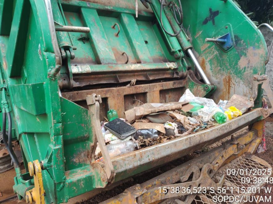 Em seguida, os policiais flagraram um caminhão da empresa despejando lixo no pátio, o que configurou descarte impróprio. O veículo então foi apreendido e o funcionário preso em flagrante.